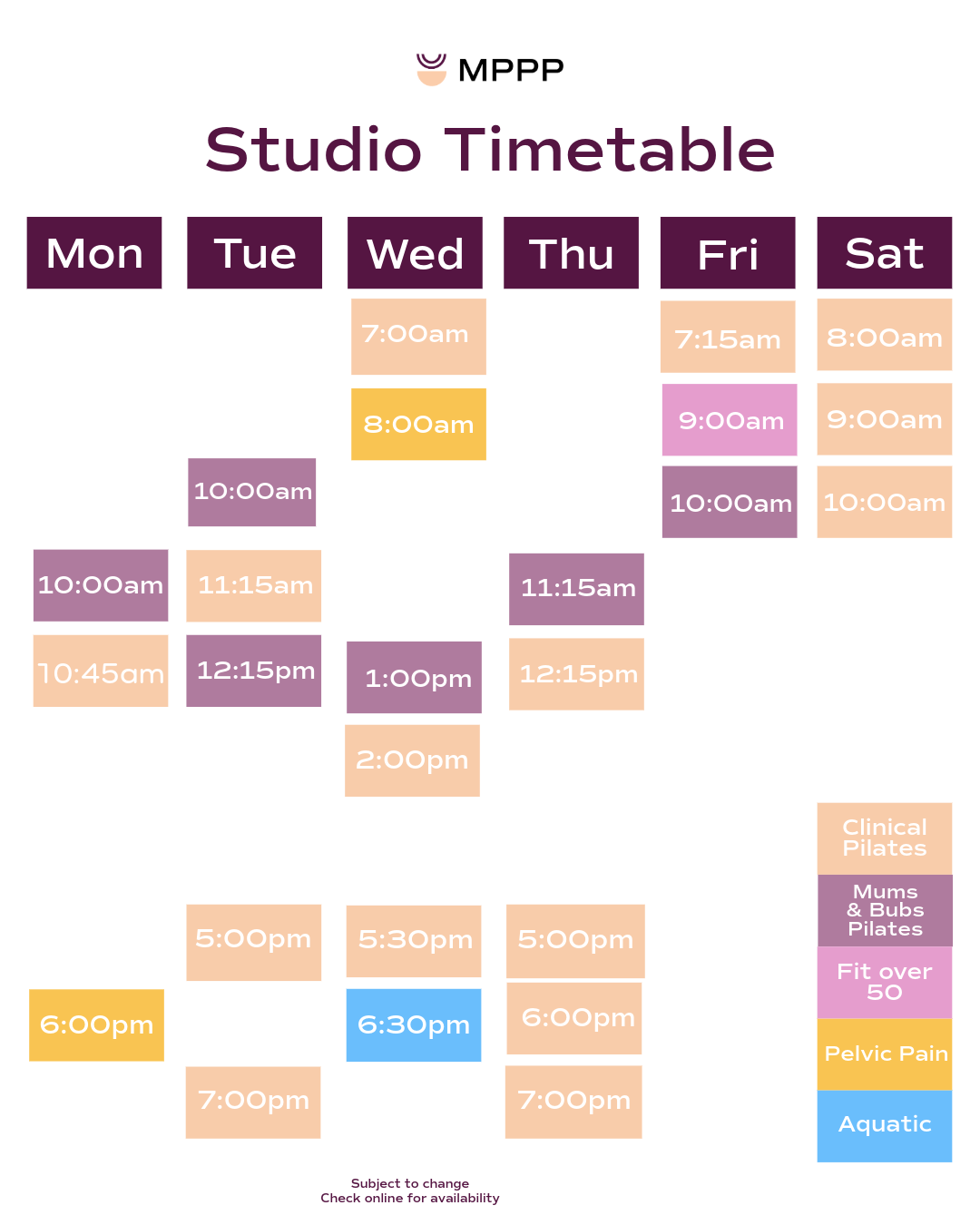 PRE ATTENDANCE REQUIREMENTS: Physio assessment to take history to understand injuries, goals, health status and safety of class attendance. If previously attended MPPP classes then no assessment is required.